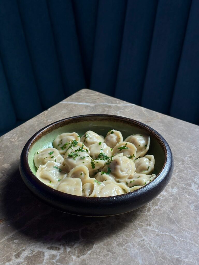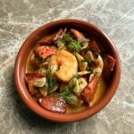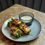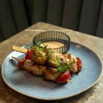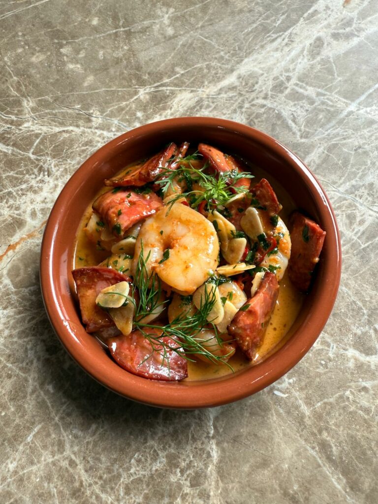 krewetki w emulsji daktylowo-maślanej, natka pietruszki, chilli, czosnek