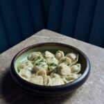 shrimps in date-butter emulsion, parsley, chili, garlic